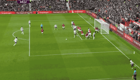 第53分钟,B费开出角球,在3名维拉球员的夹击下,卡塞米罗抢到前点,头槌破门。